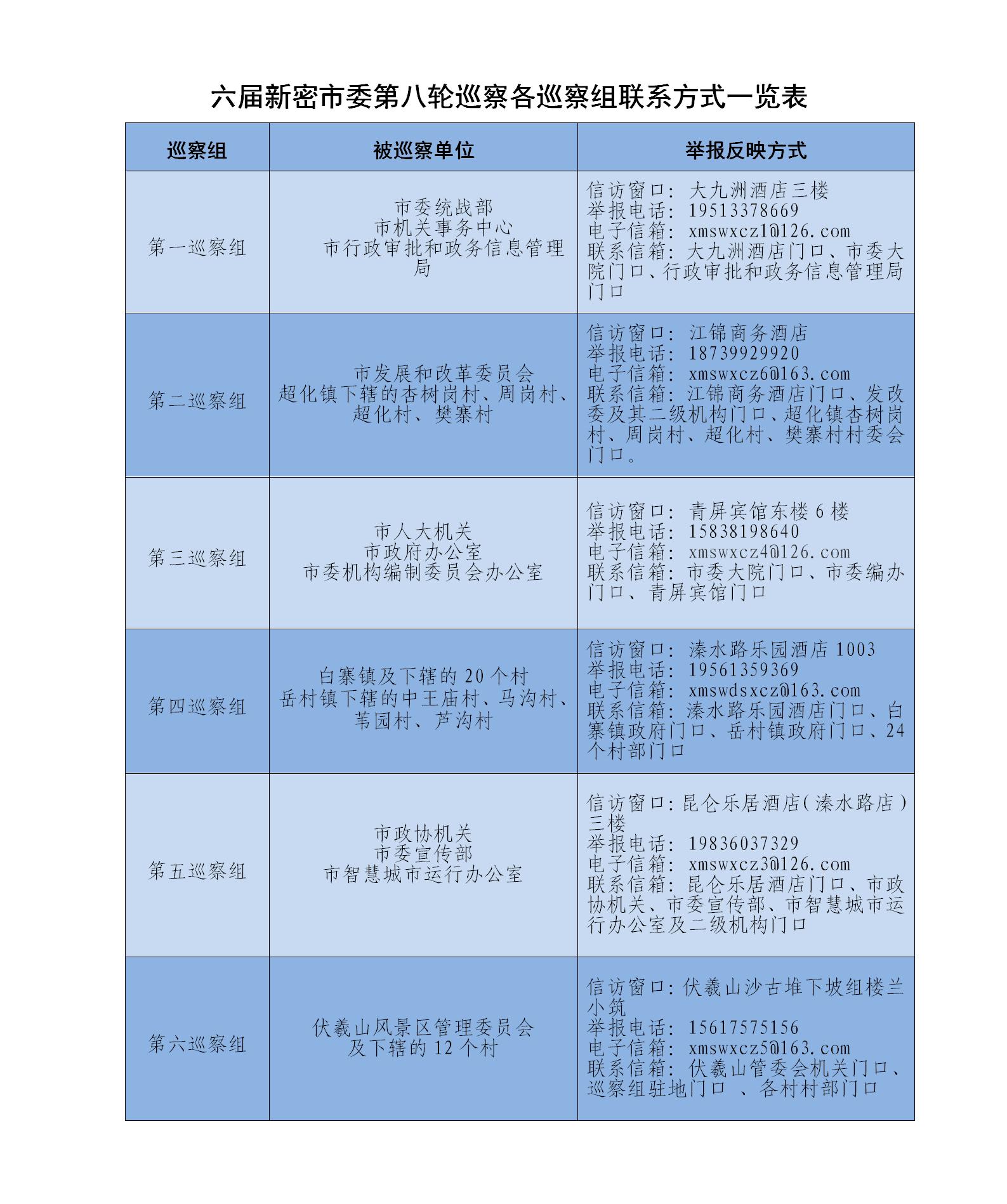 巡察期间,各巡察组开通联系电话、接收短信手机、电子邮箱、联系信箱、“郑在巡”二维码,受理群众反映问题。巡察组接收来电时间为工作日:8:30-12:00、14:00-17:30,受理截止日期为12月6日。对不涉及本轮巡察对象的信访事项,按规定转有关部门办理。 (新密市纪委监委)