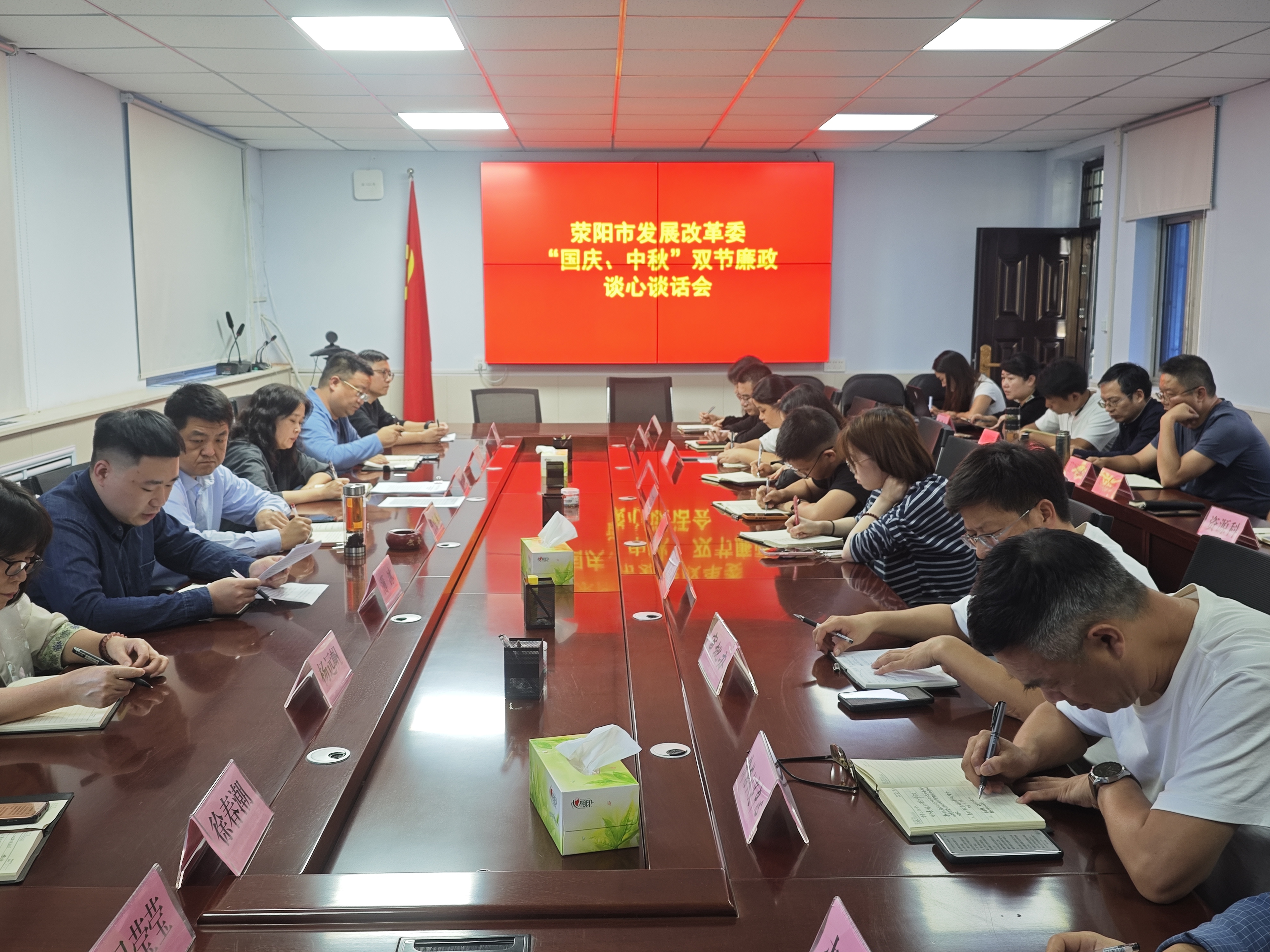 9月30日,市发改委组织中层以上干部召开国庆、中秋节前廉政谈话会。会上集中观看了警示教育片《摇“迁”树》,传达学习荥阳市纪律作风集中整治工作通报及廉洁过“双节”工作要求。会议要求,党员领导干部要率先垂范,严格落实中央八项规定精神,自觉带头抵制不良风气。全体干部职工要深刻汲取警示片中惨痛教训,防微杜渐、警钟长鸣,严格遵守廉洁自律各项规定,过一个廉洁、祥和、安全的节日。