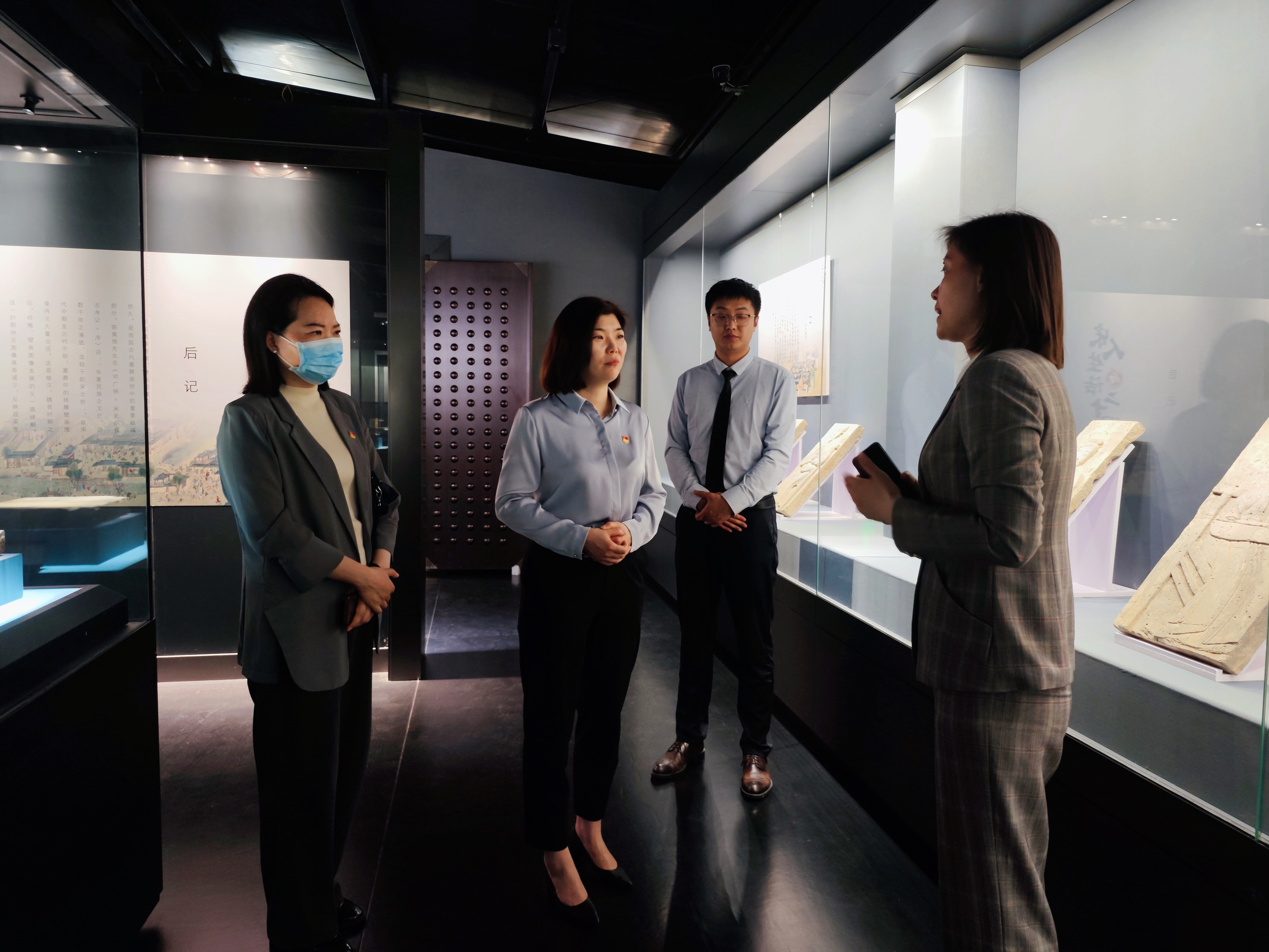大家首先听取了郑州大象陶瓷博物馆的简介,“大象”取自河南的简称“豫”,人象之合是古代河南的地域特征,该馆的藏品以中原历代的陶瓷艺术品为主,河南地处中原,故命名为大象陶瓷博物馆。随后,一行人参观了“宋人生活与二十四孝——砖雕展”“太平有象——汉唐乐舞展”以及“大河上下——黄河流域陶瓷精品展”等主题展览。据介绍,砖雕是中华民族一种古老的建筑装饰艺术,不仅蕴含着生动而璀璨的灵性,也鲜明地反映了宋金时期的社会生活与二十四孝道的追求。历久弥新的展出文物让大家欣赏、赞叹,在穿越时空的思辨与对话中,大家感受到文物中蕴含的跃动生命气息和中华文化五千年传承的巨大魅力。