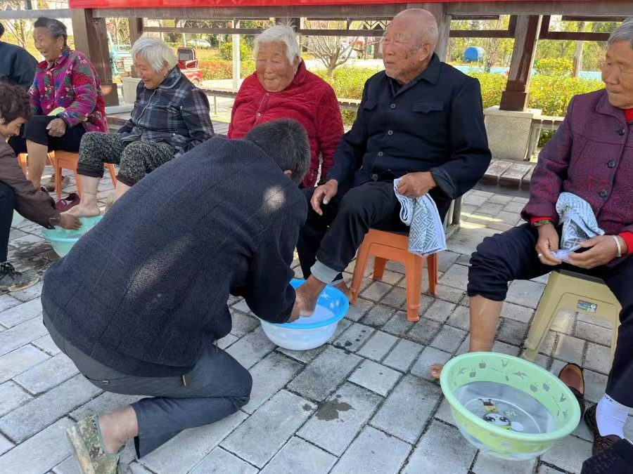 活动中,工作人员和老人的子女们为村内老人剪指甲、洗脚、理发、拍照,不一会儿,老人们就变得个个精神抖擞、笑容满面。随后,在一声声“节日快乐”“健康长寿”的美好祝福声中,老人们共同分享蛋糕。同时,邀请本村的老干部、老党员为年轻人讲授家风家训故事,传递廉洁正能量。“‘诚信待人孝为先’是我们家的家训。我的父辈们都是共产党员,他们忠诚于党和国家的事业,为党和人民奉献了自己的青春年华。”一名老党员用朴实的语言讲述了家庭故事,深刻表达了好家风是如何在家中传承的。老党员们的话语如阵阵清风,吹拂着现场每一个人,与温馨祥和的气氛一同构成了浓厚的尊老爱老和敬老向廉的氛围。